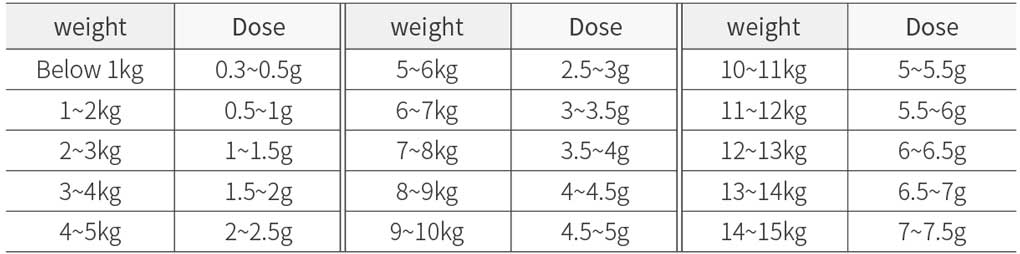 [Daily recommended dose per weight]