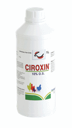 Oral administration after dilution in drinking water 50ml of Ciroxin 10% O.S. per 100L of drinking water